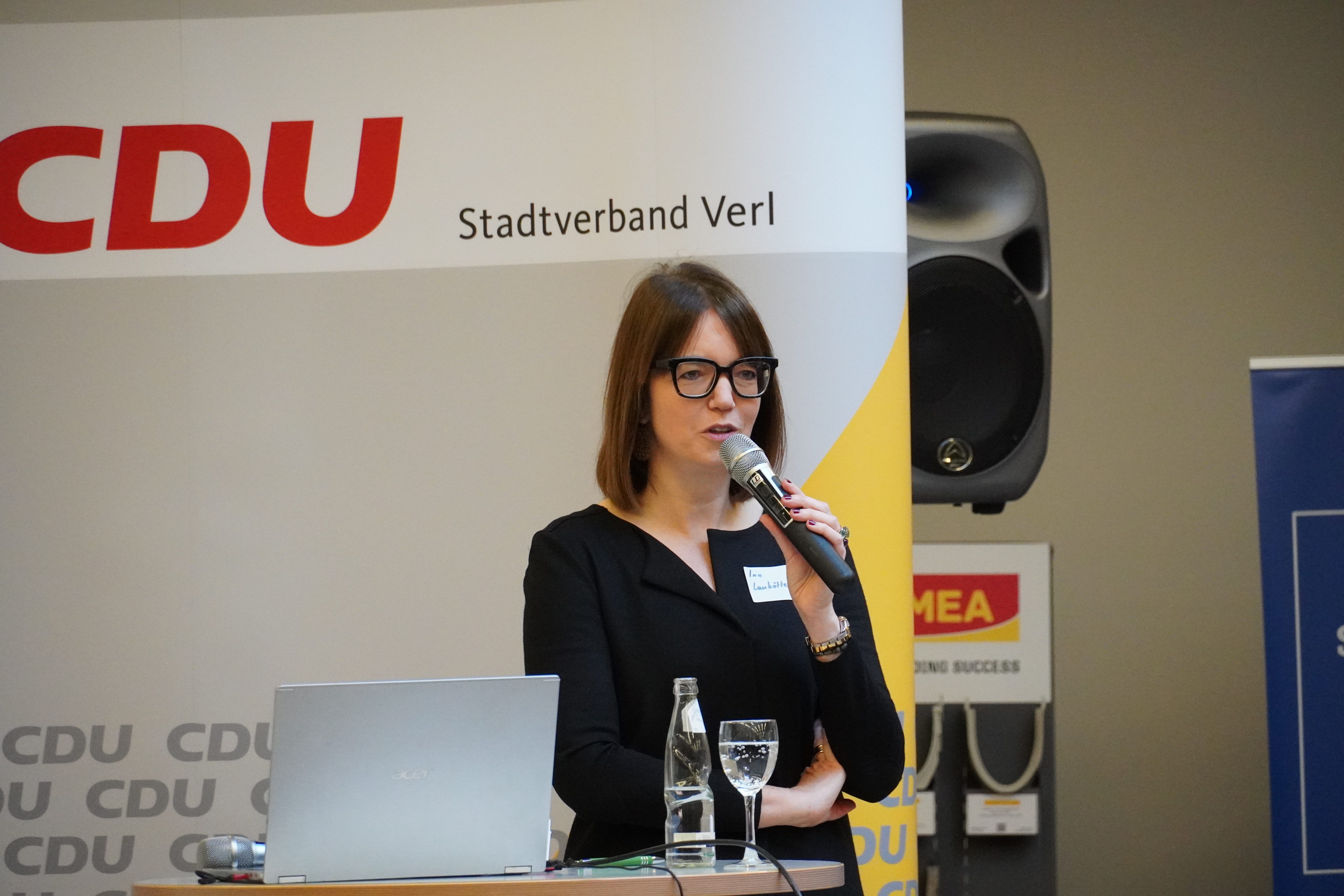 🎤 Nach der gewohnt kurzweiligen Begrüßung durch unseren Stadtverbandsvorsitzenden Sebastian Dahlkötter gab Landrätin Ina Laukötter Einblicke in ihre ersten Wochen im Amt. Besonders die Themen Sicherheit, Verlässlichkeit und wirtschaftliche Stärke standen im Mittelpunkt – alles Faktoren, die unsere Region prägen und Zukunft sichern.